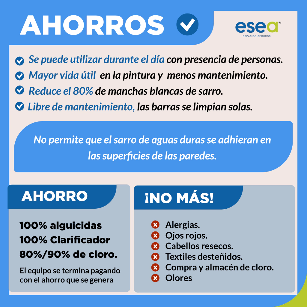 Disfrute del agua cristalina y segura, sin los riesgos y costos que trae el uso intensivo de productos químicos.
