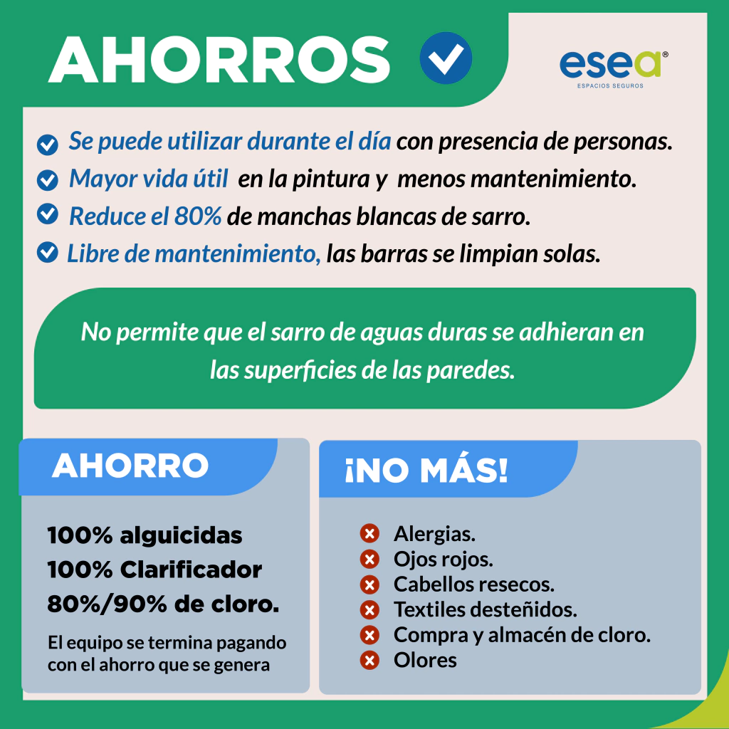 Disfrute del agua cristalina y segura, sin los riesgos y costos que trae el uso intensivo de productos químicos.