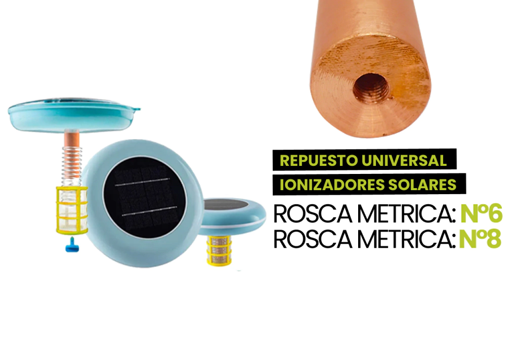 CONTIENE UNA ROSCA EN CADA LATERAL PARA QUE SE PUEDEN COLOCAR EN MÚLTIPLES MARCAS DE IONIZADORES SOLARES.